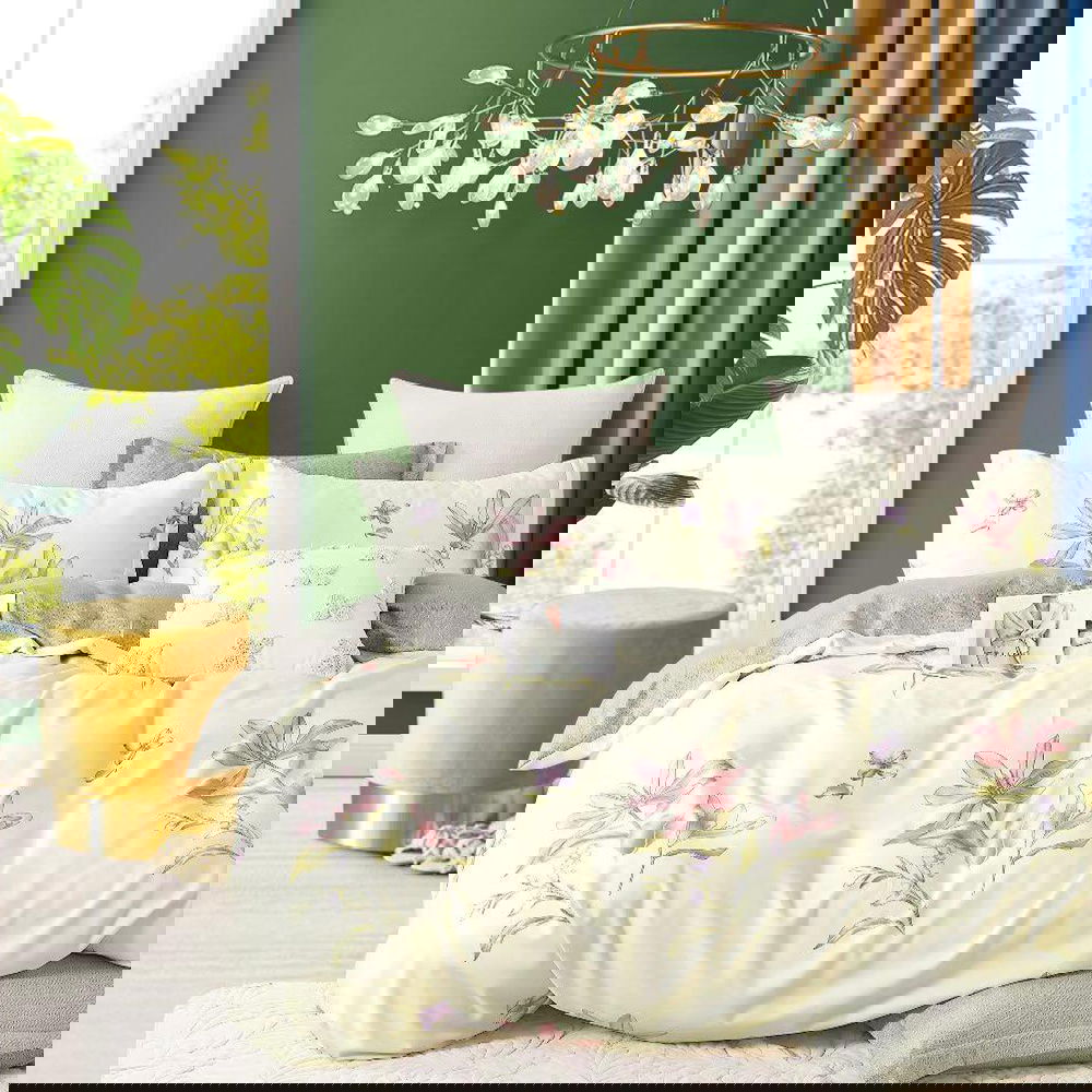 Set CADOU - Lenjerie din Finet 5D cu Elastic - 4 Piese + Pilota Groasa + 2 Perne 50x70 cm - Zborul Fluturilor prin Flori - LFDEB_A096C