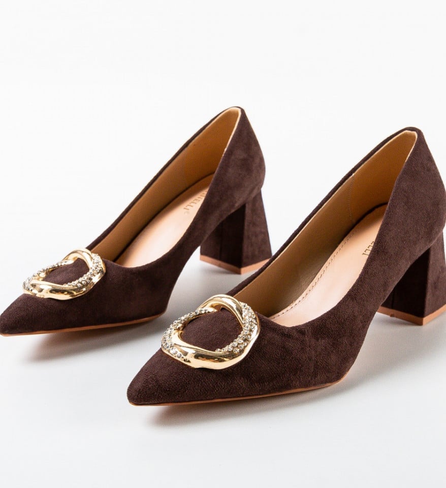 Pantofi cu toc dama Engros, model Trois, maro