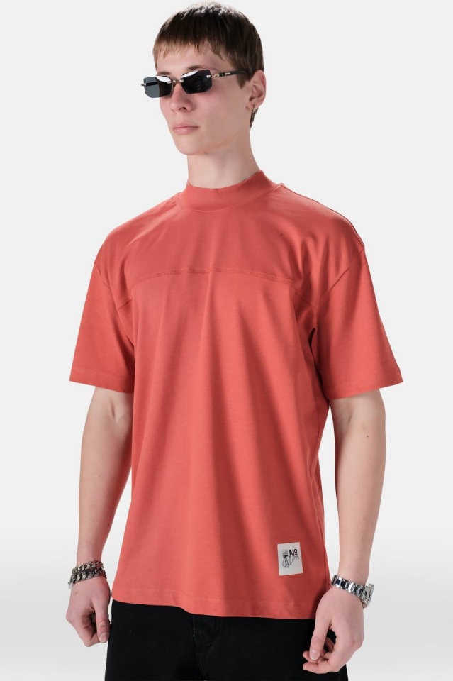 TRICOU BARBATI OVERSIZED TILE-RED MINIMAL TECH STREETWEAR (MĂRIME: M)