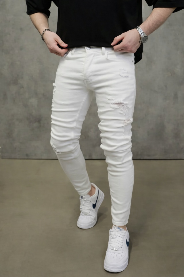 BLUGI SLIM FIT WHITE DESTROYED – CLEAN URBAN STYLE (MĂRIME: 36)