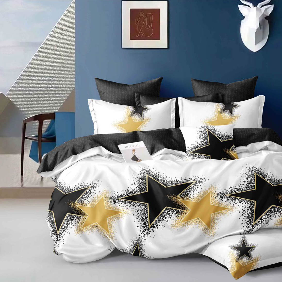 Lenjerie pat dublu, Finet, 6 piese, Alb, Negru, stelute