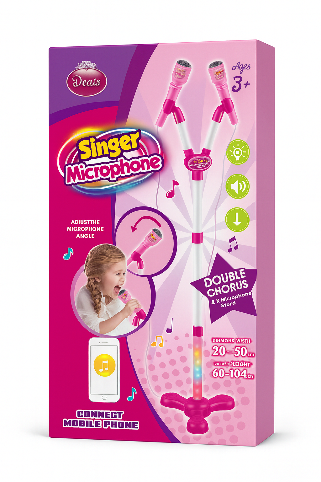 Microfon Muzical cu Stativ - Singer Microphone, Reglabil 60-104 cm, Functie Conectare Telefon