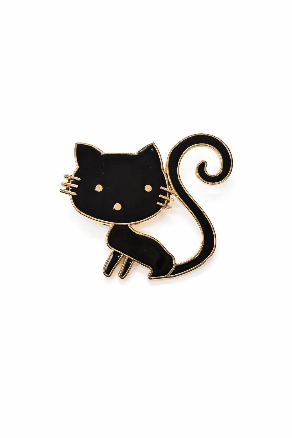 Brosa pisica 4x5 cm, finisaj auriu cu email negru sau textura, cadou primavara jucaus