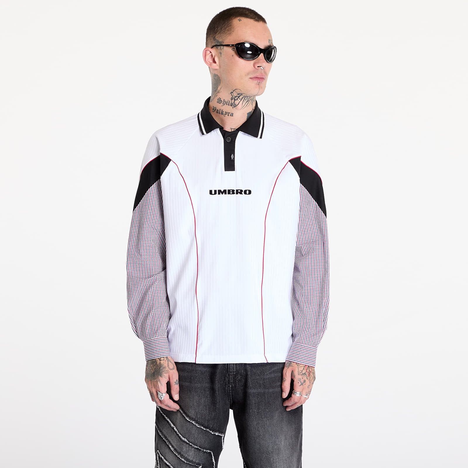 Camasa Umbro by Slam Jam Gingham Cut Up Polo Shirt White