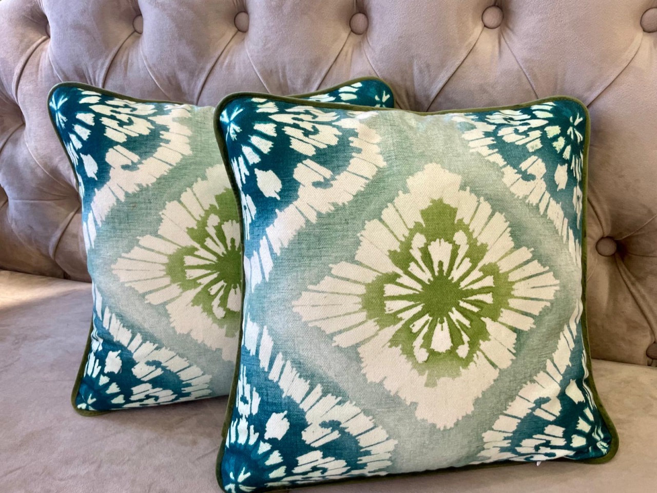 Set 2 perne decorative 2x40x40cm cu fata detasabila, Hiko Fantasy bumbac blue turcoaz lime