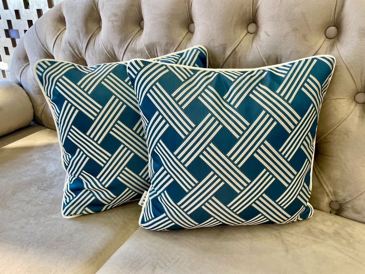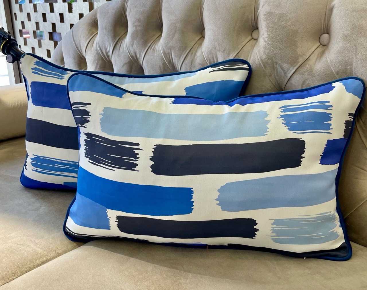 Set 2 FETE de perna Hiko Geometric,tafta fina albastra 2x40x40cm