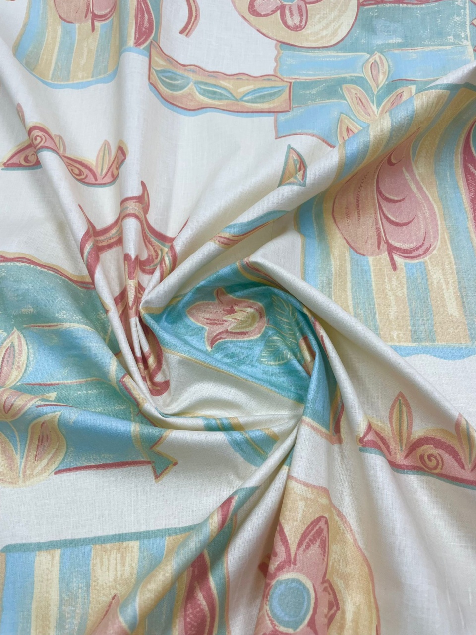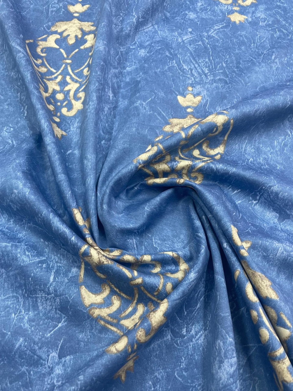 Bumbac fin cu vascoza, metraj Albastru cu galben, baroc, latime material 140cm