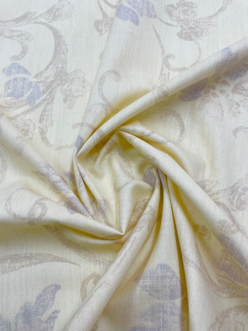 Bumbac plin, metraj Vanilla, galben deschis culoarea vaniliei cu flori bej latime material 140cm