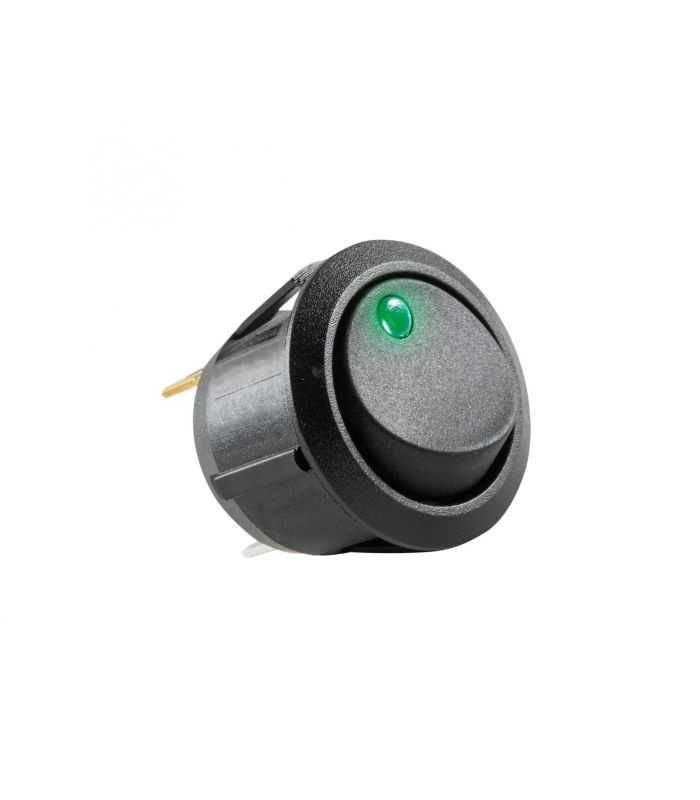 Comutator basculant 12V 20A ON-OFF cu retinere 1 contact cu LED verde incastrare 20 mm