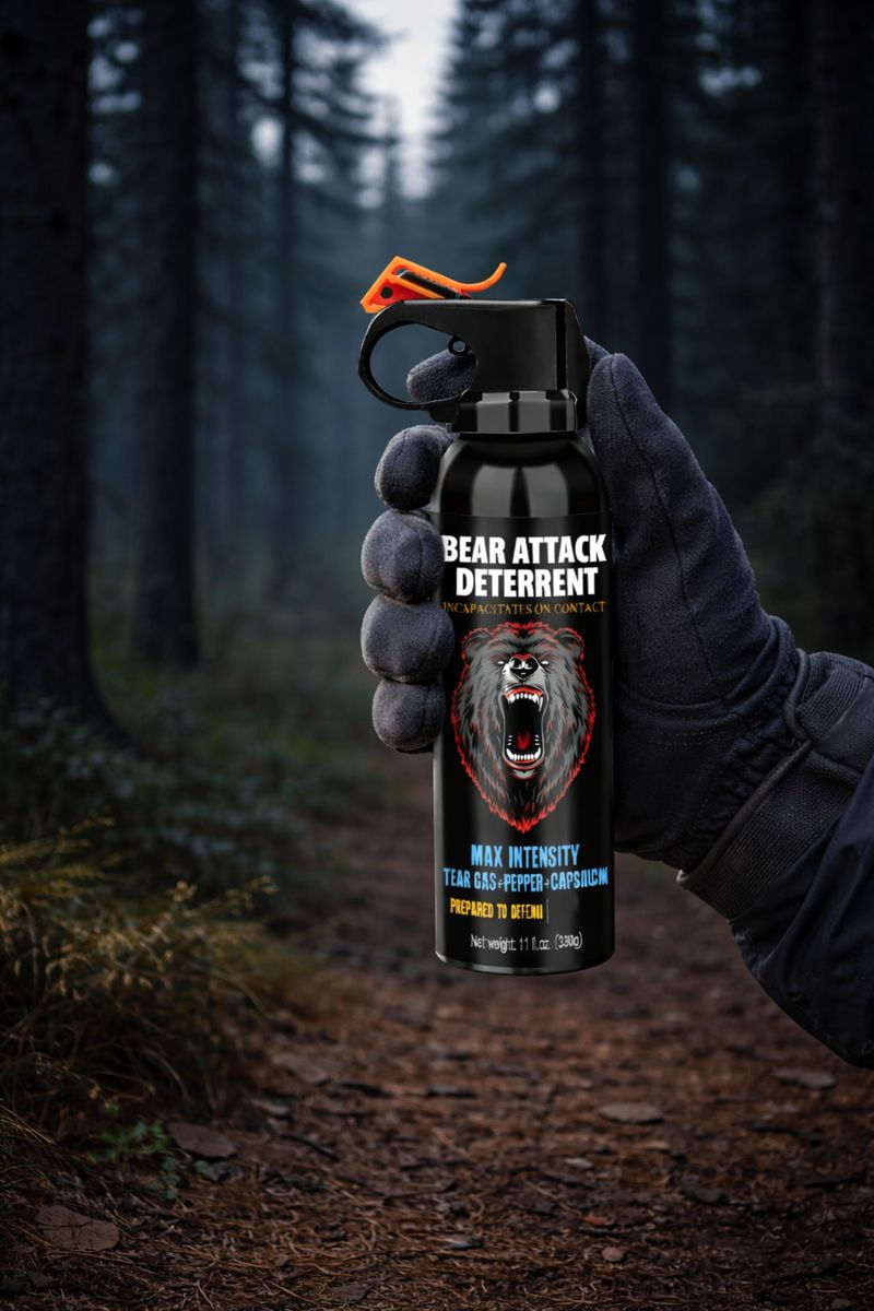 Spray cu ardei iute IdeallStore® impotriva ursilor, Grizzly Defence, dispersant, auto-aparare, 63 ml, negru