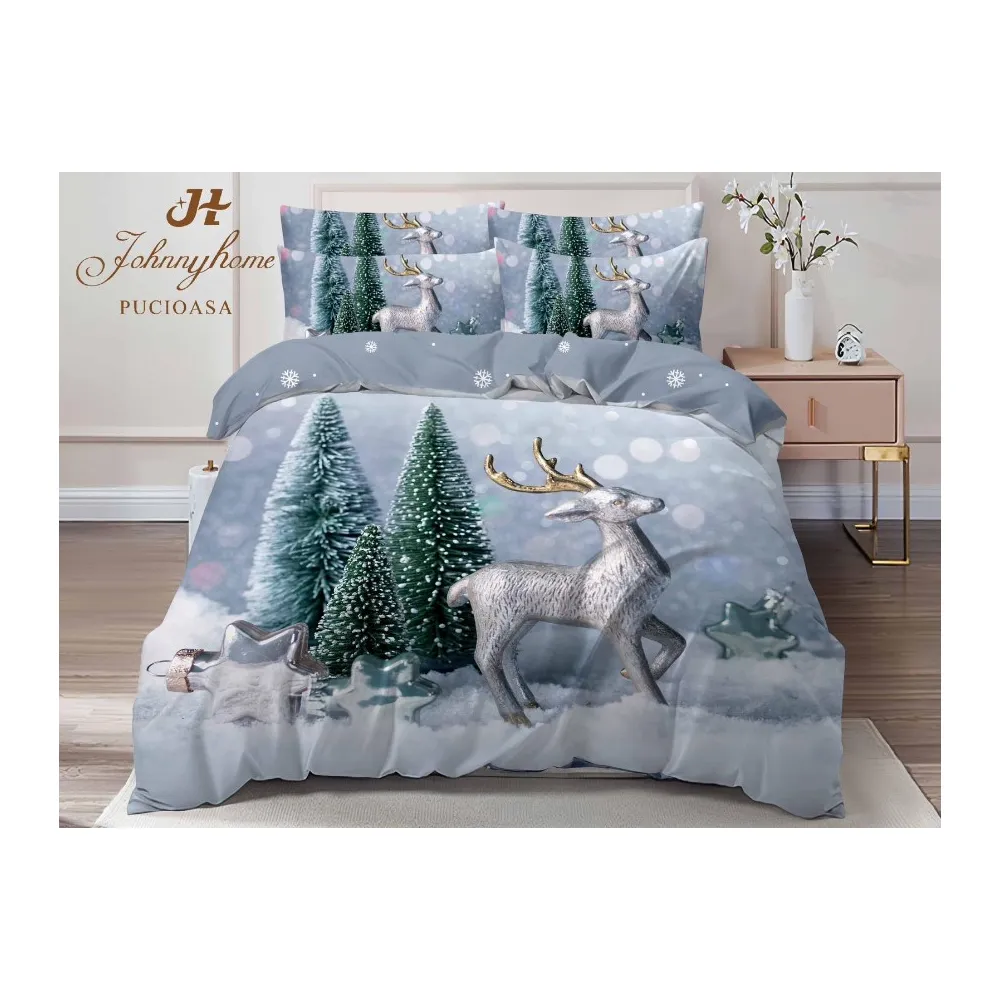 Lenjerie Pat cu 6 piese Bumbac Finet, Model de Craciun - SIPR-Q2-17