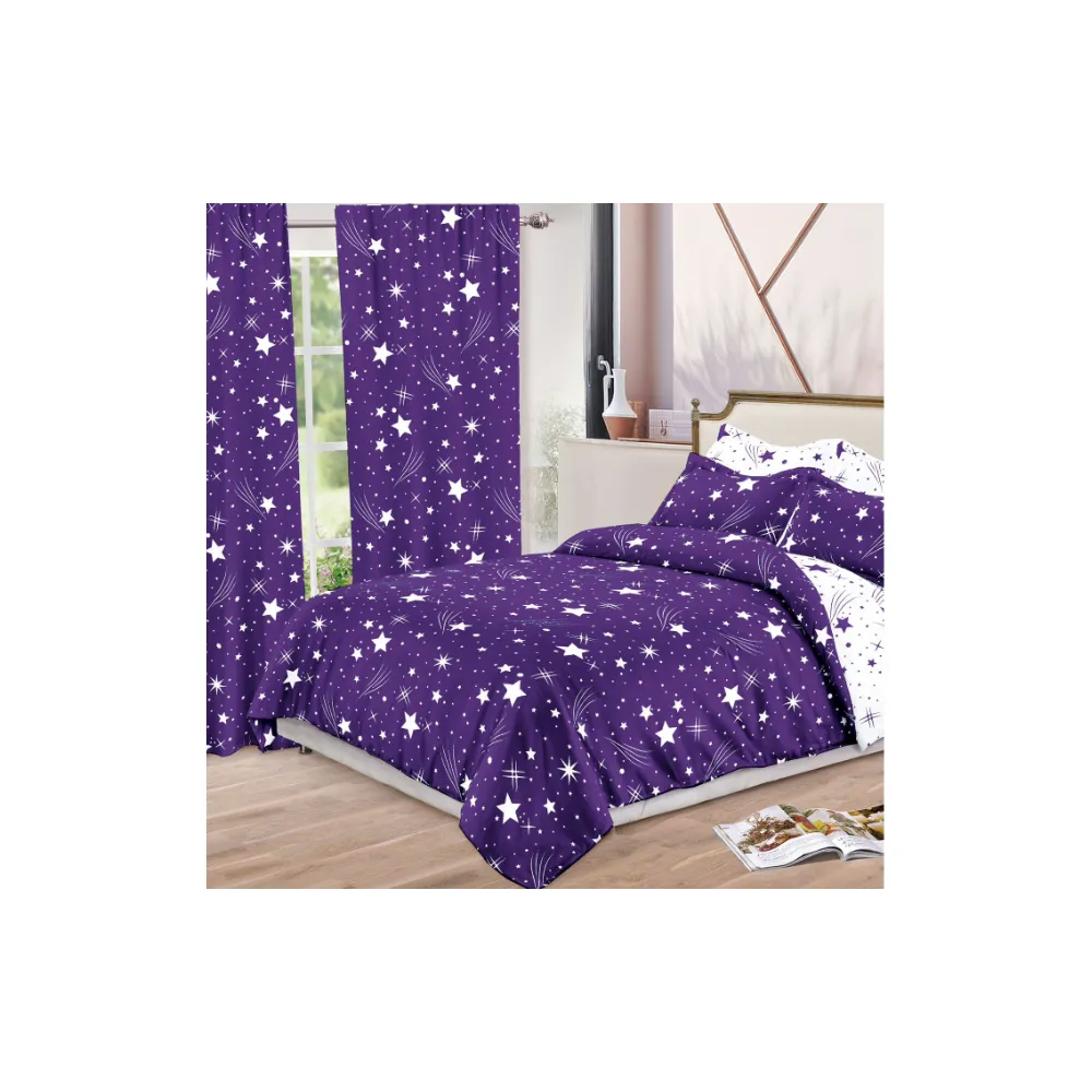 Lenjerie de Pat Bumbac Finet, 6 Piese + 2 Draperii - SIPR-S-17