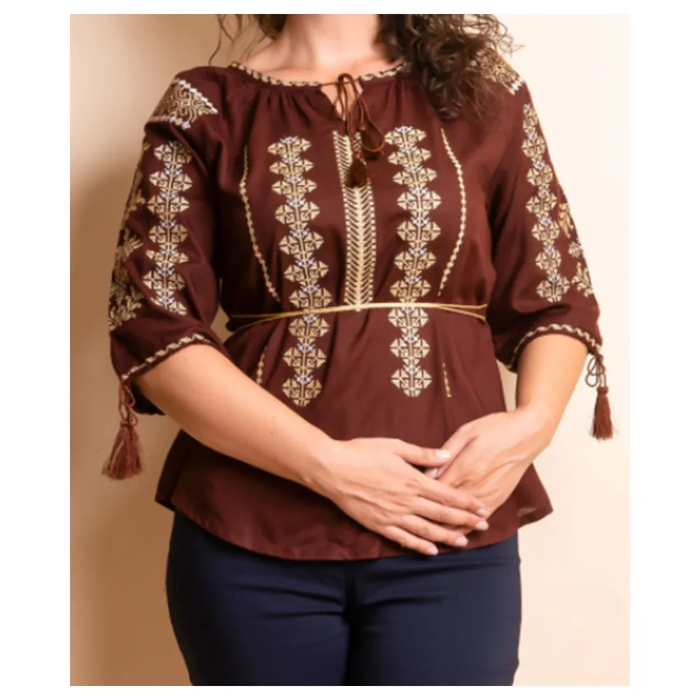 Bluza Maro cu Motiv Floral Auriu - BMG159