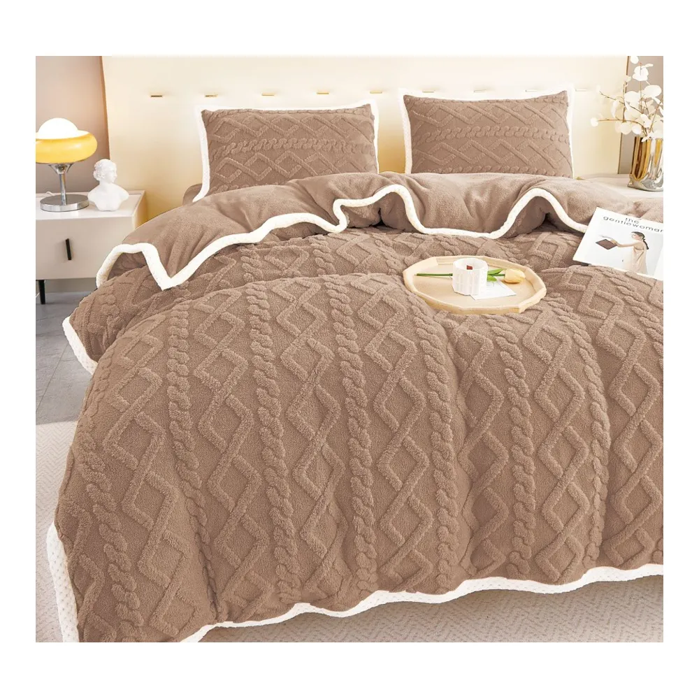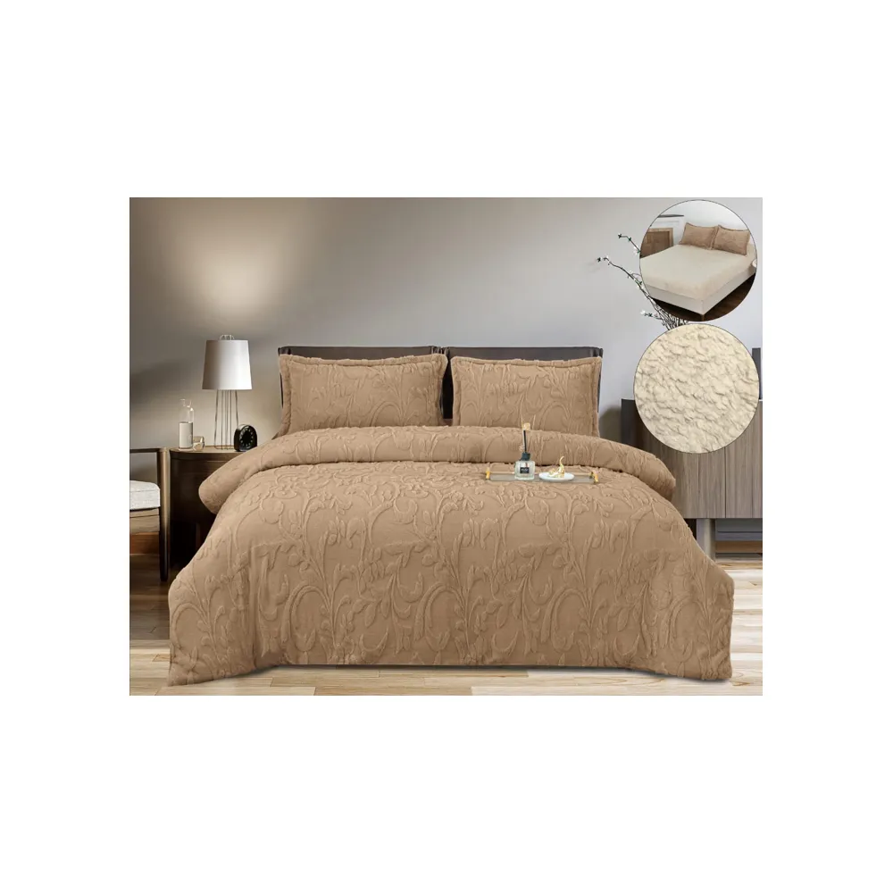 Lenjerie Cocolino 4 Piese, Blana Imitatie iepure, Pentru Pat Dublu, cu Elastic, Maro - PIT406