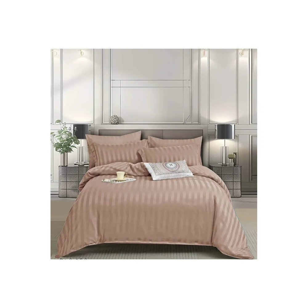 Lenjerie de Pat Dublu cu Elastic Bumbac Damasc 6 Piese, Maro Deschis - CPL343