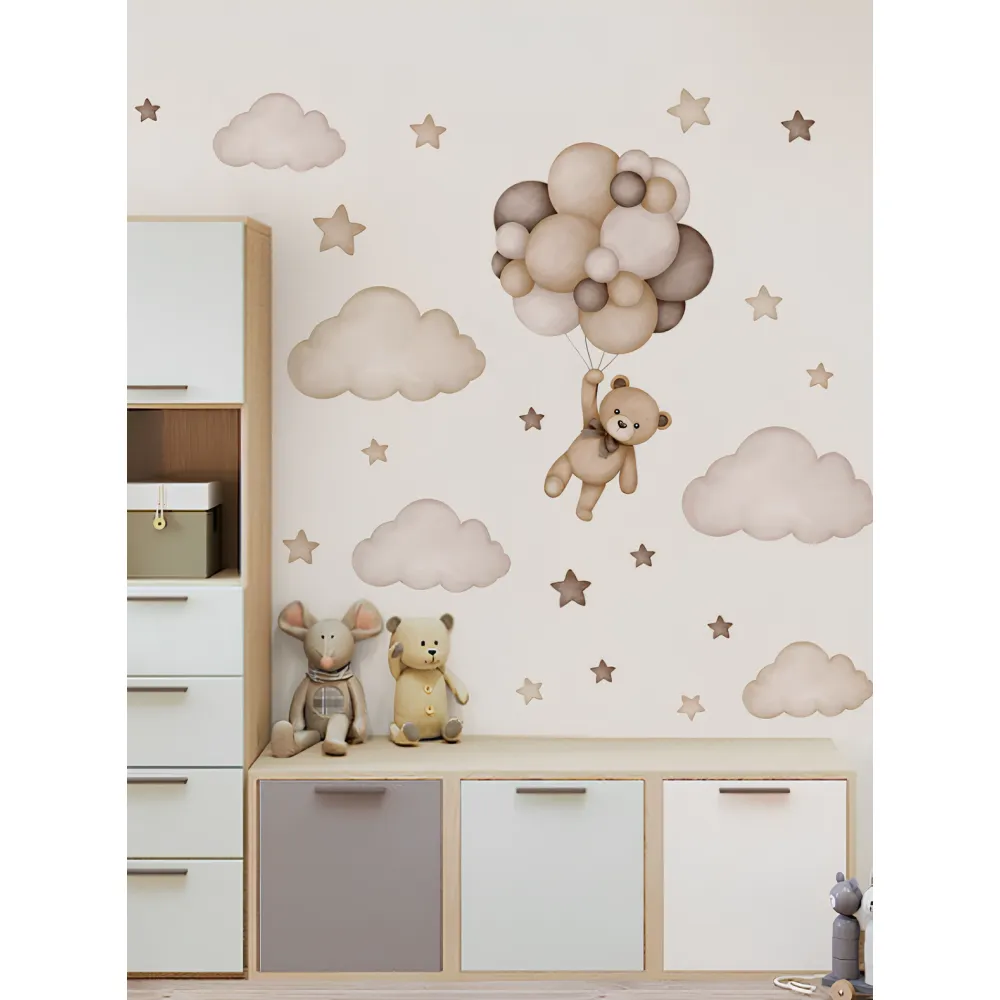 Sticker Perete Autocolant Urs Maro cu Baloane 90x30cm - 250465