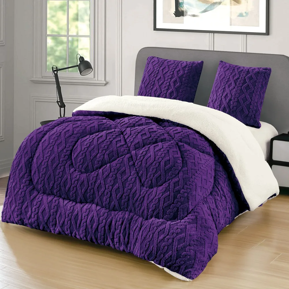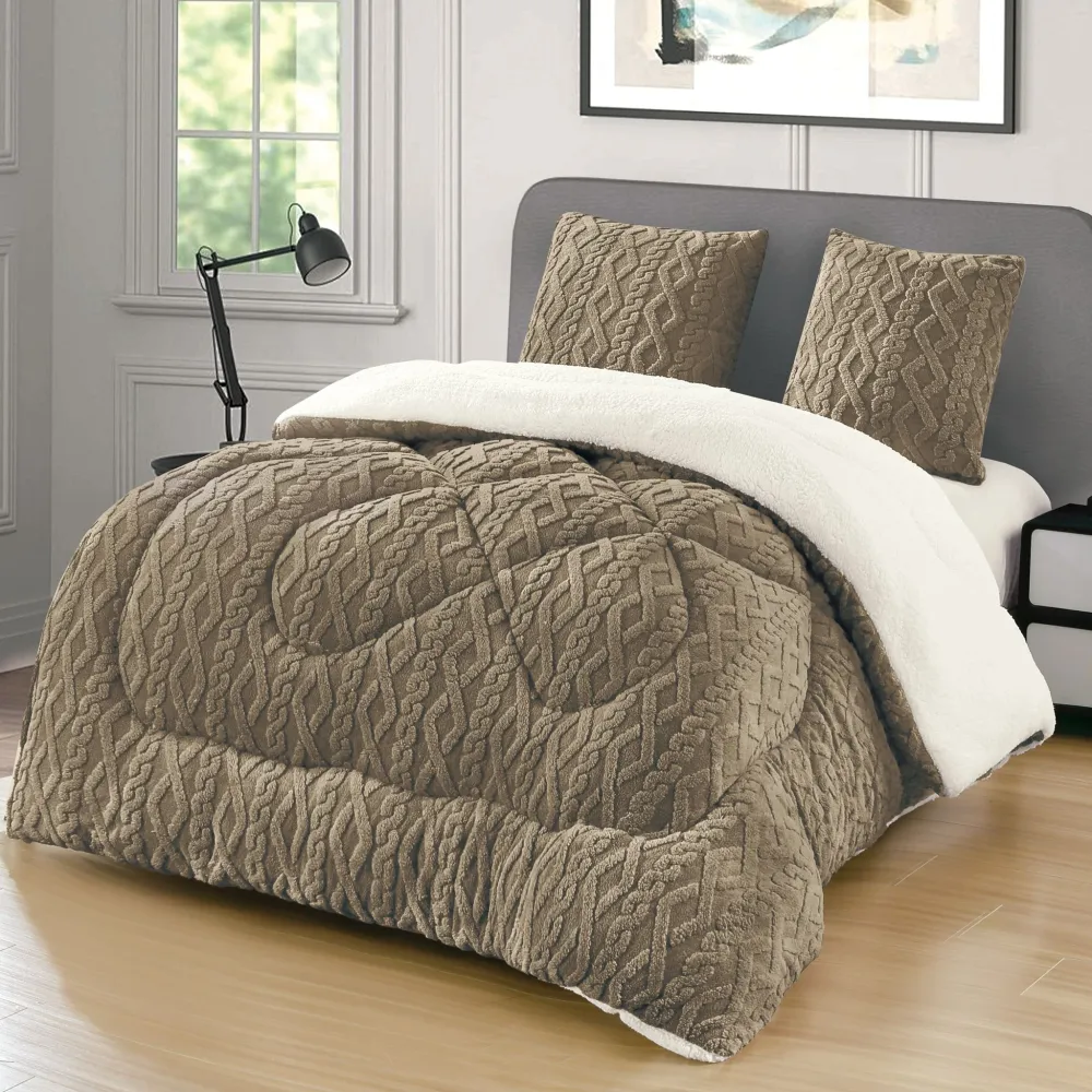 Set de Lux Din Blana Artificiala de Nurca, Cu Fermoar, Hipoalergenic, Patura + 2 Fete de Perna, Bej/Maro - JOJ701