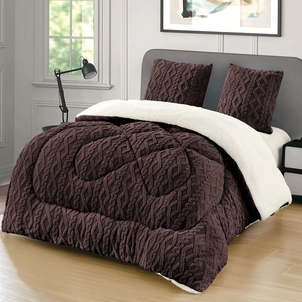 Set de Lux Din Blana Artificiala de Nurca, Cu Fermoar, Hipoalergenic, Patura + 2 Fete de Perna, Negru/Maro - JOJ700
