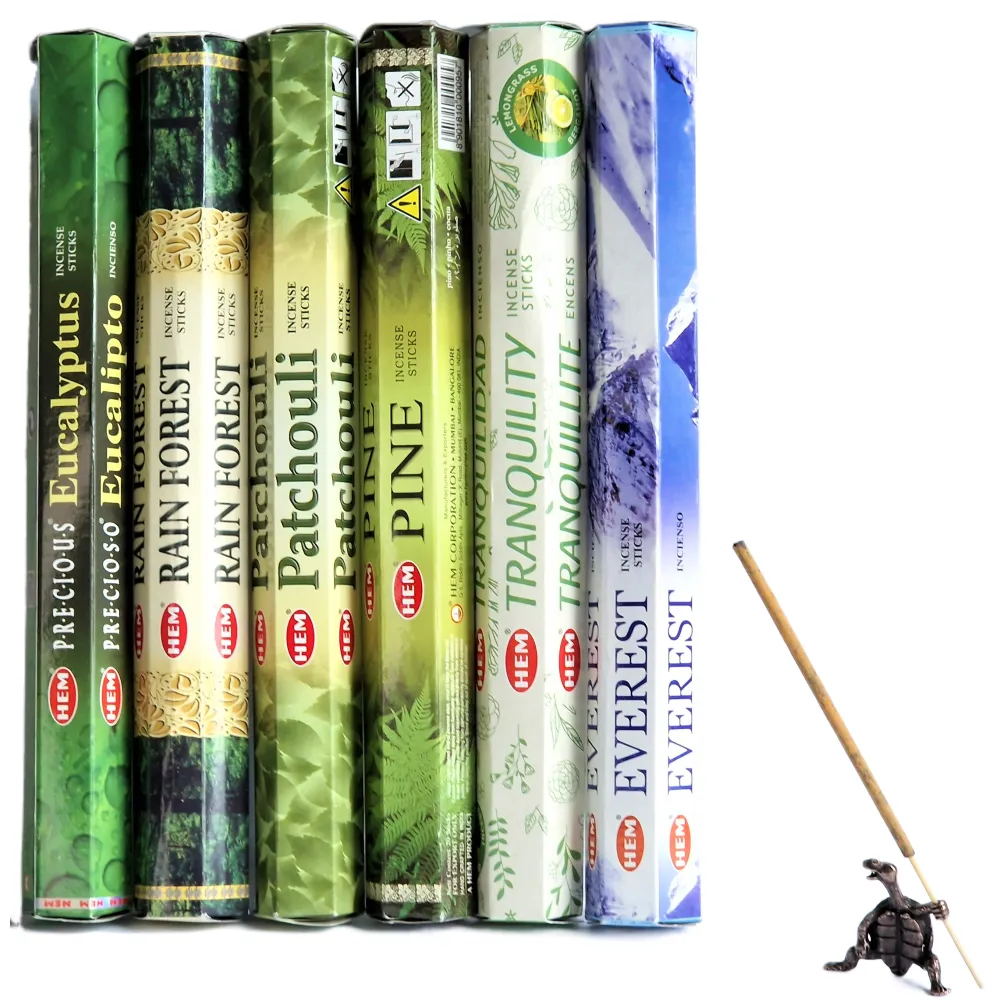 Kit Aromaterapie 120 Betisoare Parfumate, HEM, Green Mix, Cadou Suport Broscuta