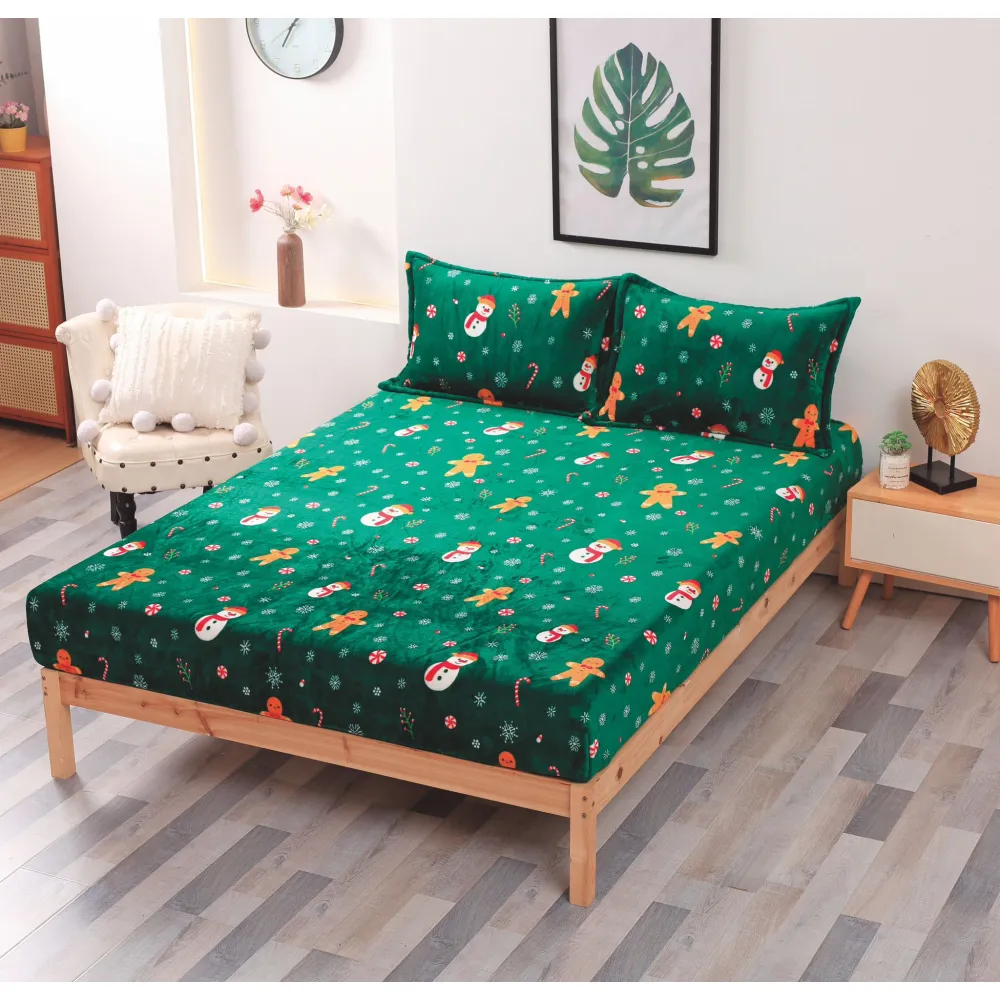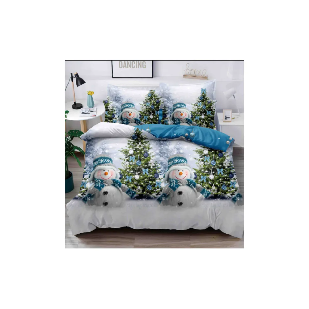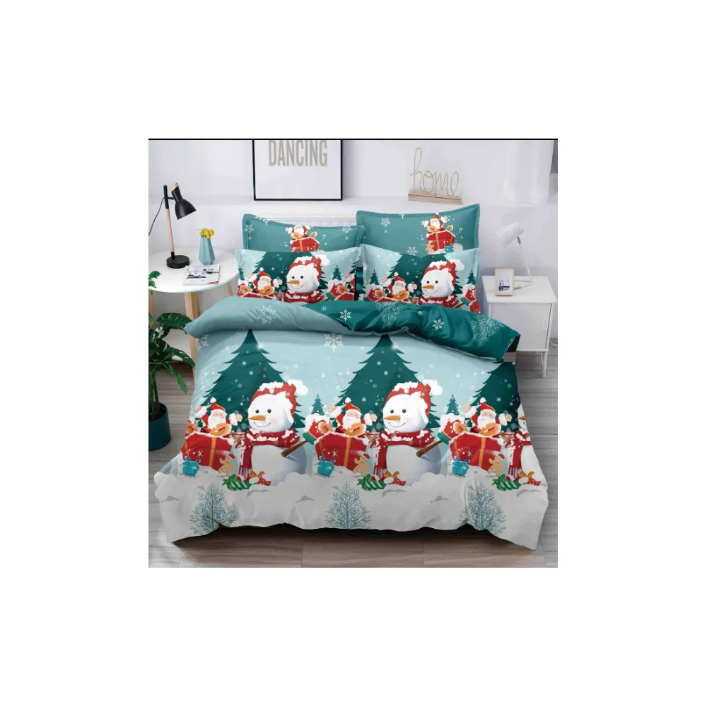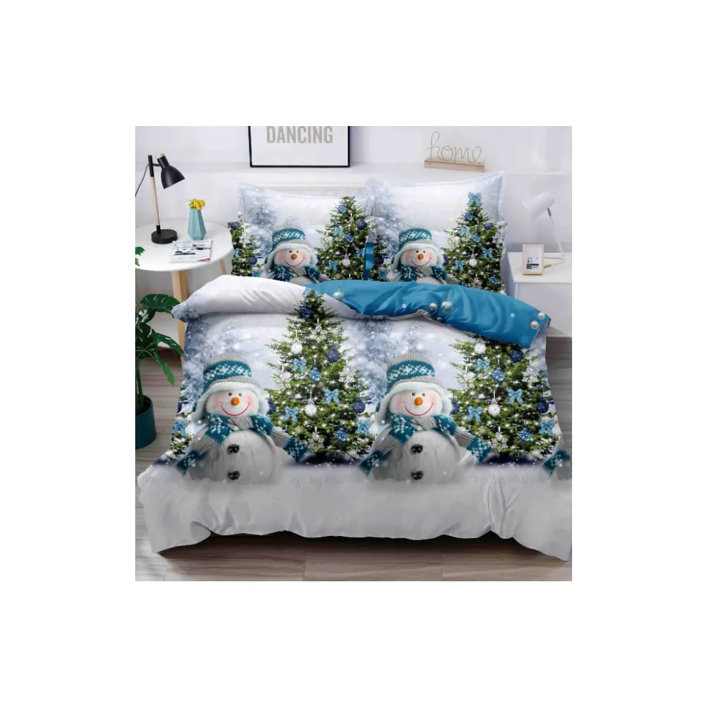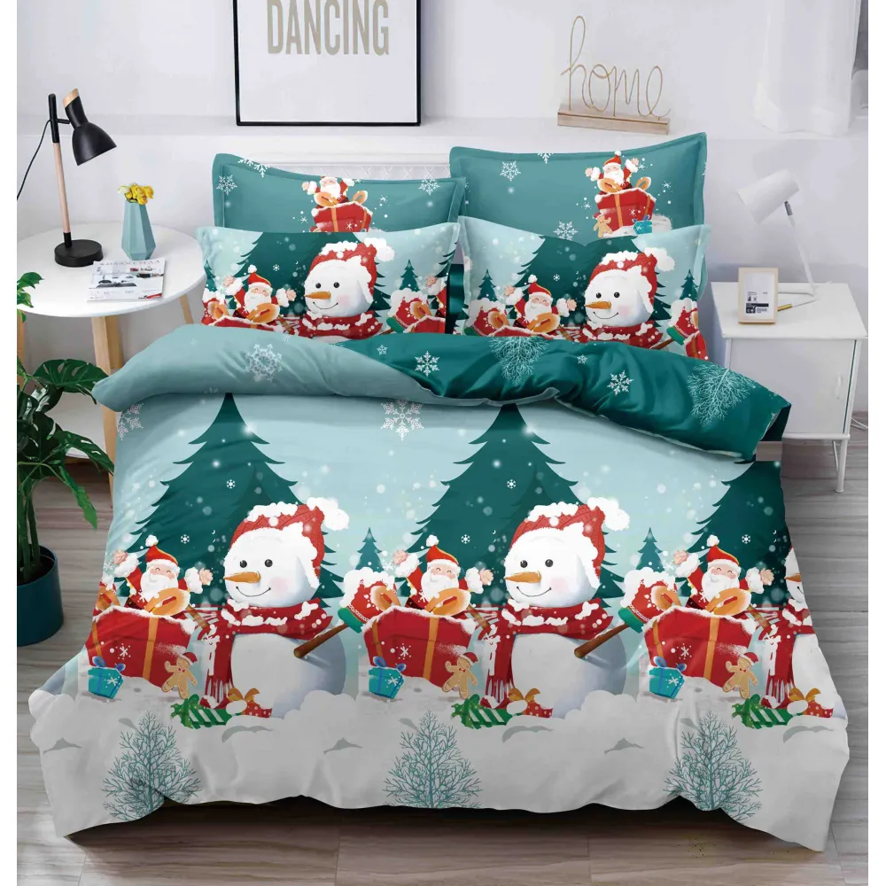 Husa de Pat, Cocolino, Model de Craciun + 2 Fete de Perna, Verde cu Om de Zapada - SUZ09