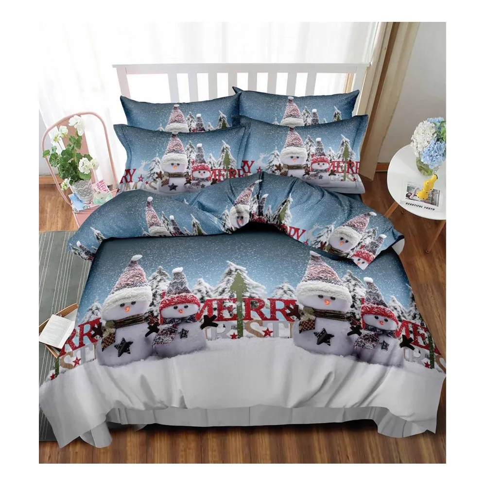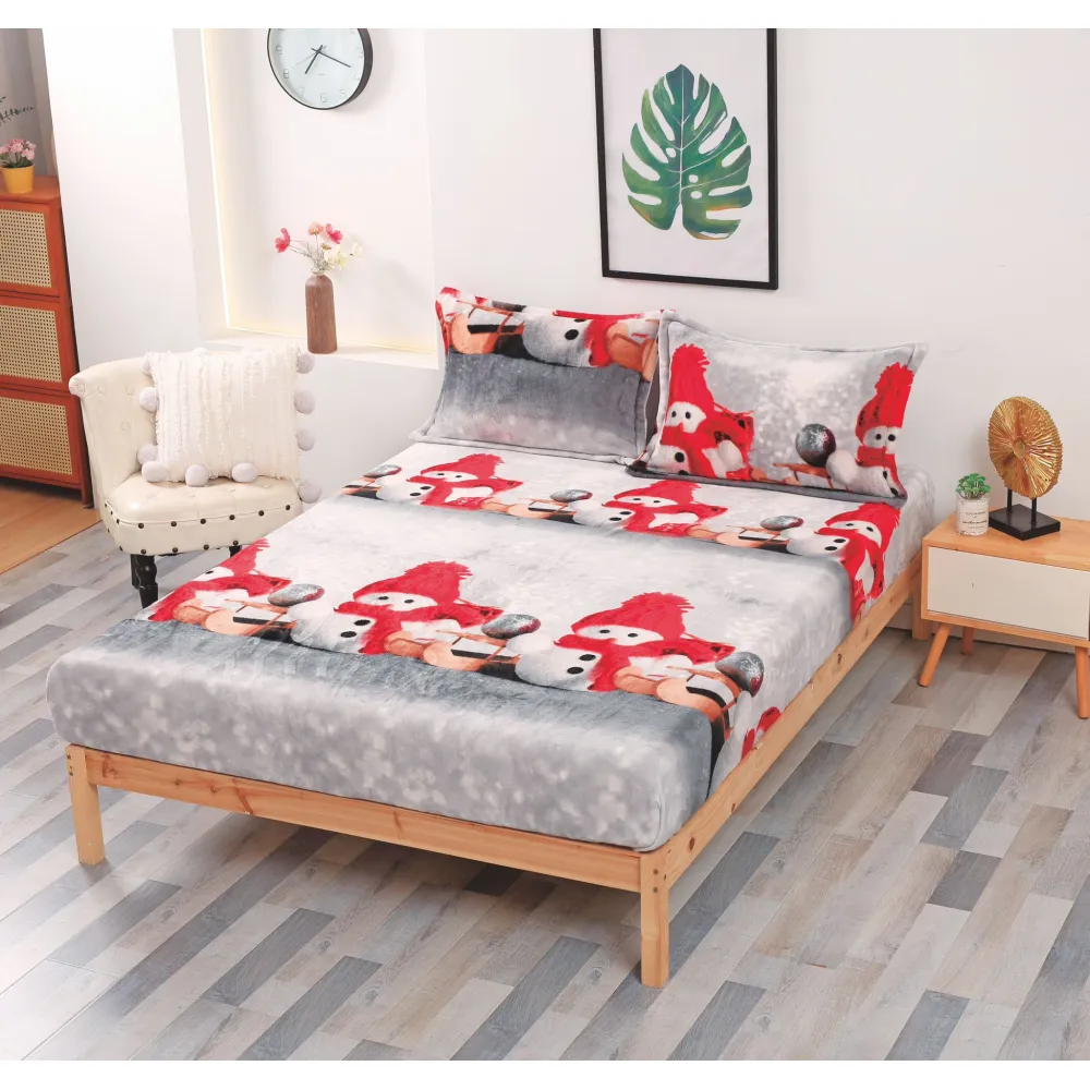 Husa de Pat, Cocolino, Model de Craciun + 2 Fete de Perna, Gri cu Om de Zapada - SUZ07