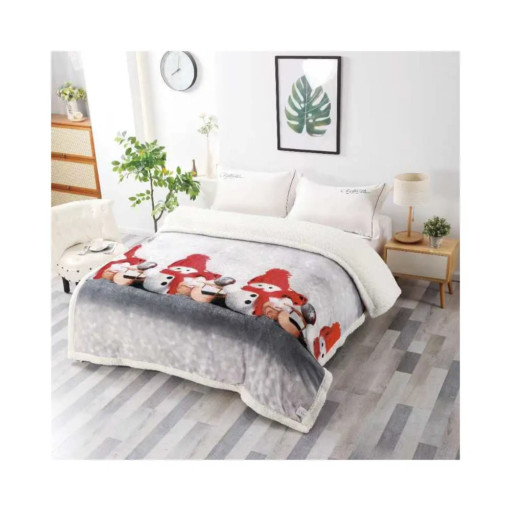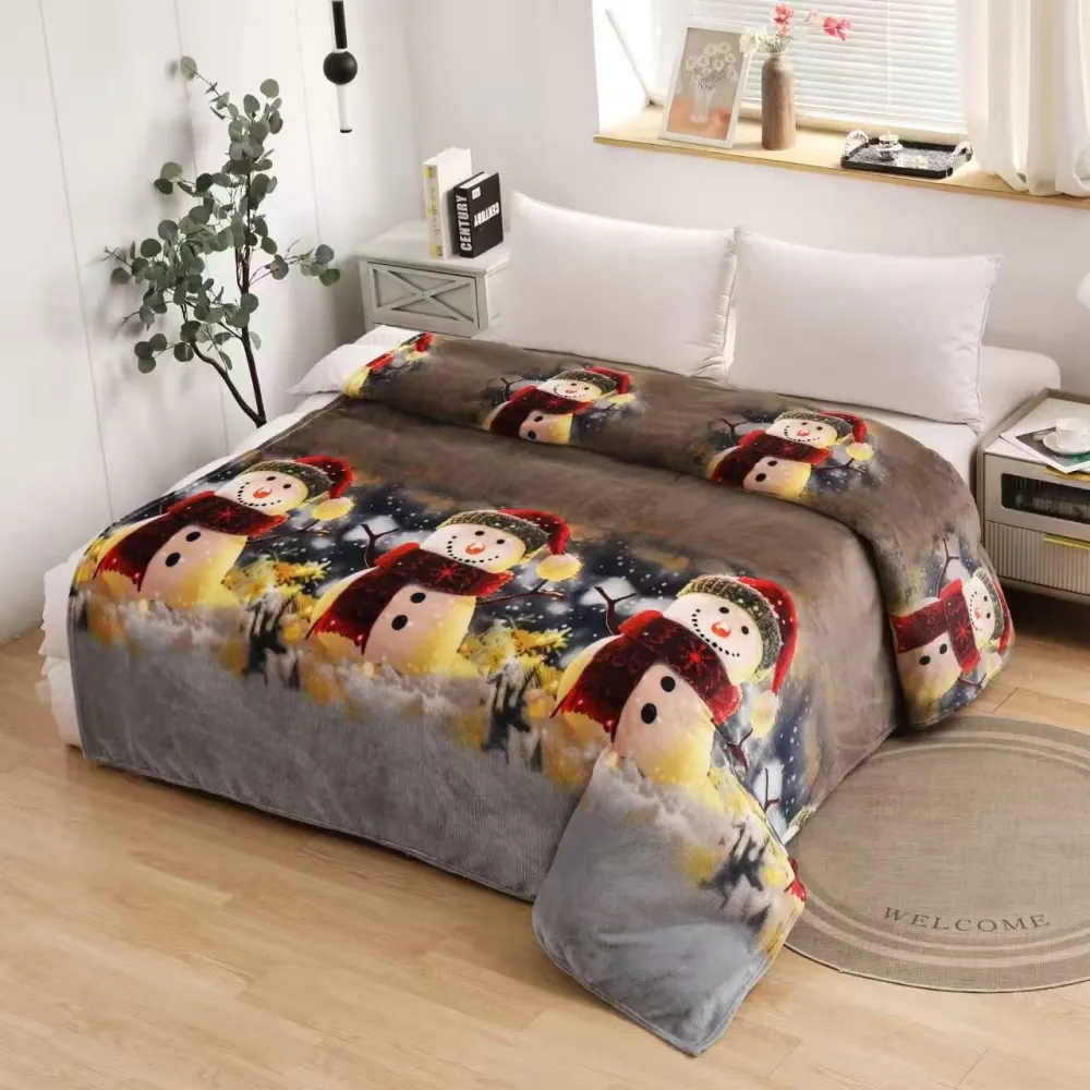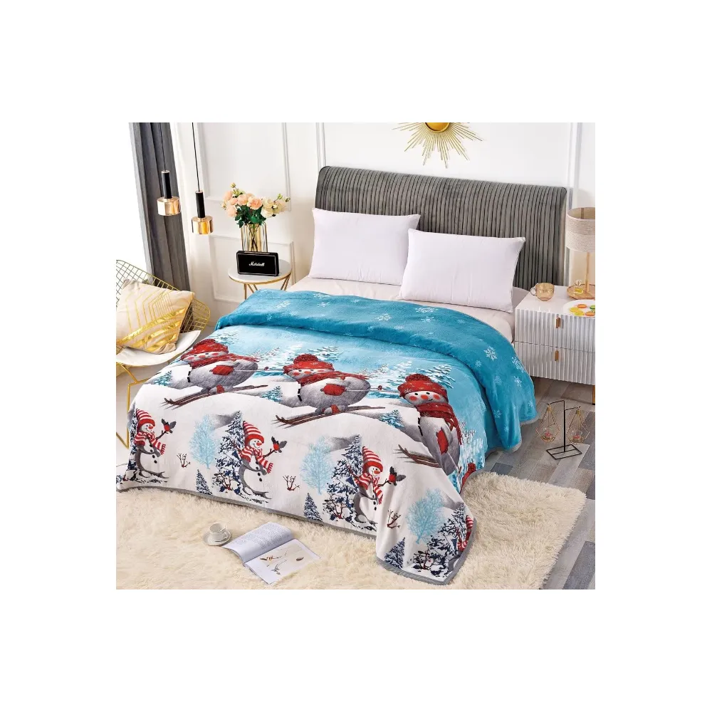 Patura Cocolino cu Blanita, Model de Craciun 200x230, Gri cu Om de Zapada - SUZ28