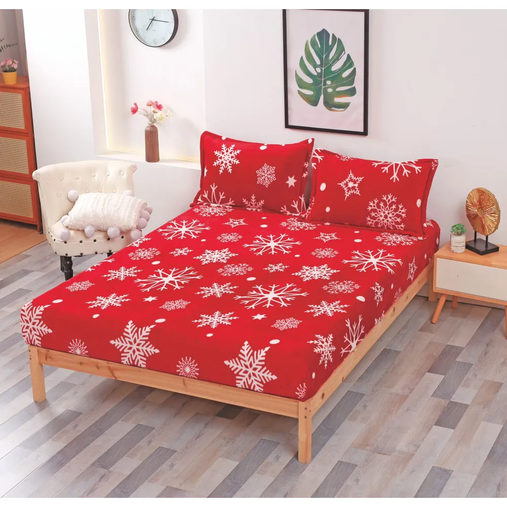 Husa de Pat, Cocolino, Model de Craciun + 2 Fete de Perna, Rosie cu Fulgi de Zapada - SUZ03