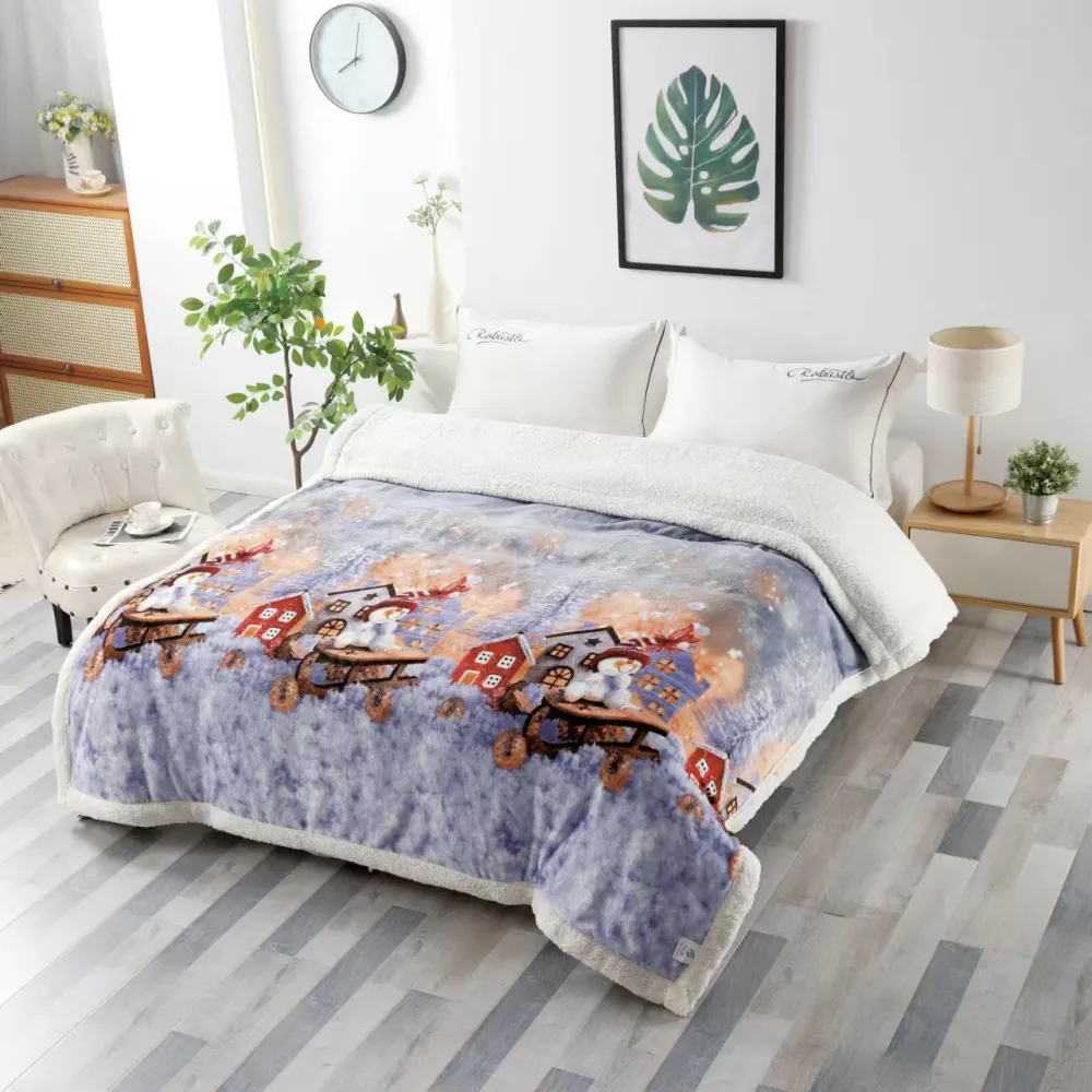 Patura Cocolino cu Blanita, Model de Craciun 200x230, Om de Zapada si Casute - SUZ21