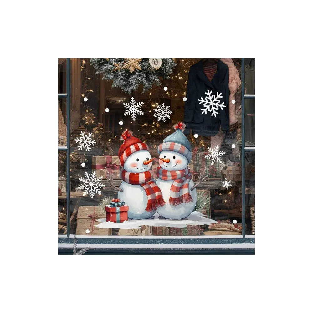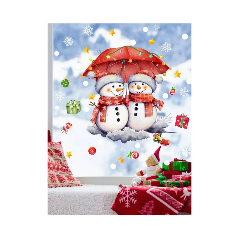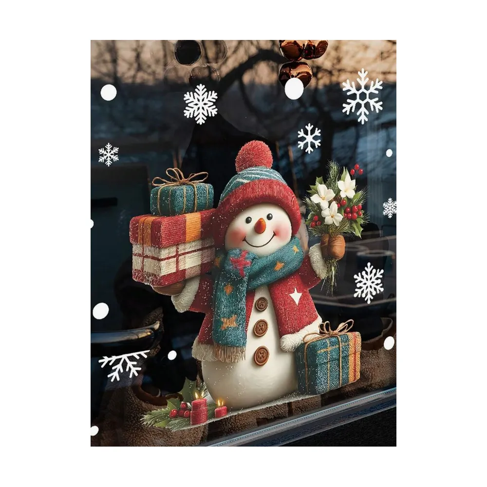 Sticker Perete Autocolant Om de Zapada, Cadouri si Fulgi 30x30cm, model Geam - 22054