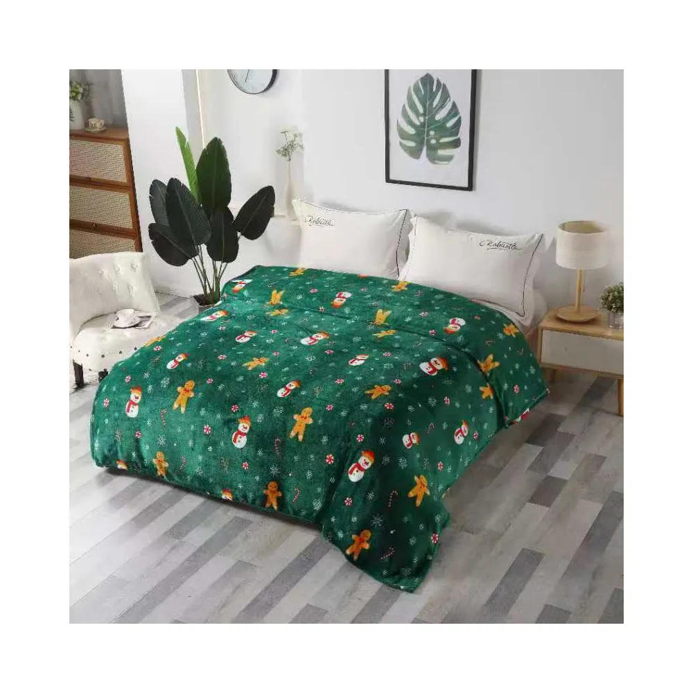 Patura Cocolino cu Blanita, Model de Craciun 200x230, Verde cu Om de Zapada - SUZ29