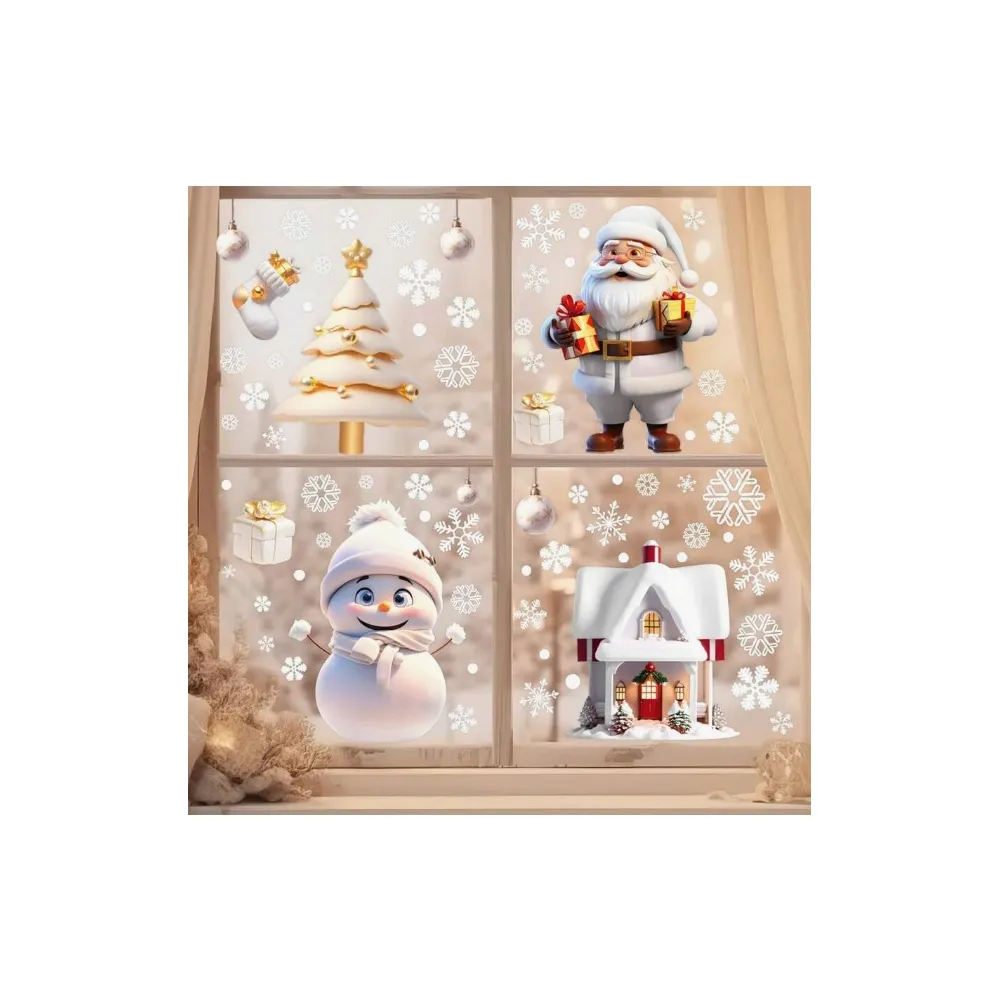 Sticker Perete Autocolant Om de Zapada, Cadouri si Fulgi 30x30cm, model Geam - 77937
