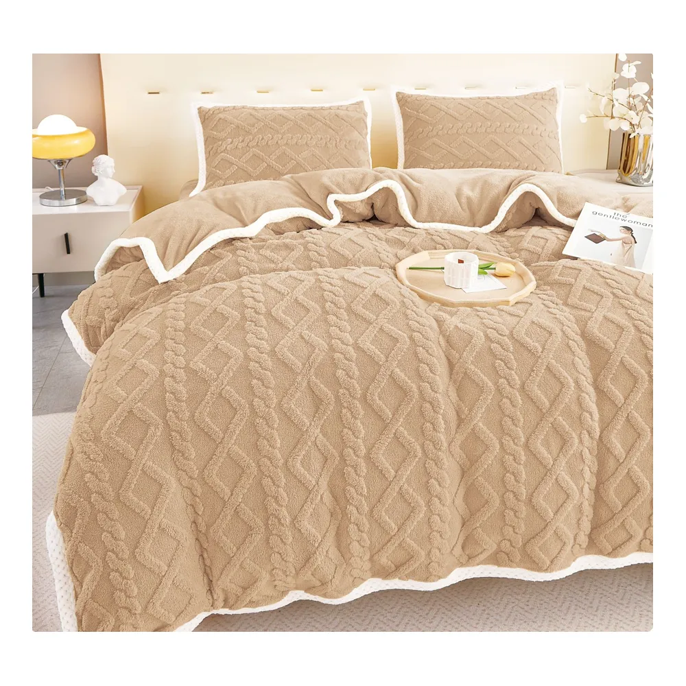 Lenjerie de Pat Brodate , Cearceaf cu Elastic, 6 Piese, Blană de Iepure Artificială cu Fir Scurt, Bej - JOJ637