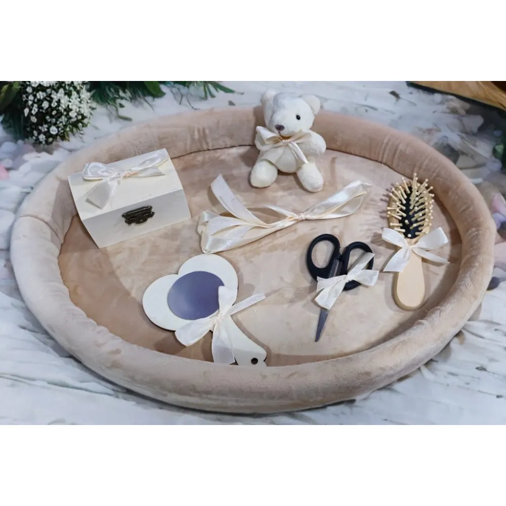 Tavita Mot/Turta, Ovala din Catifea cu 7 Piese - Bej - TPT534