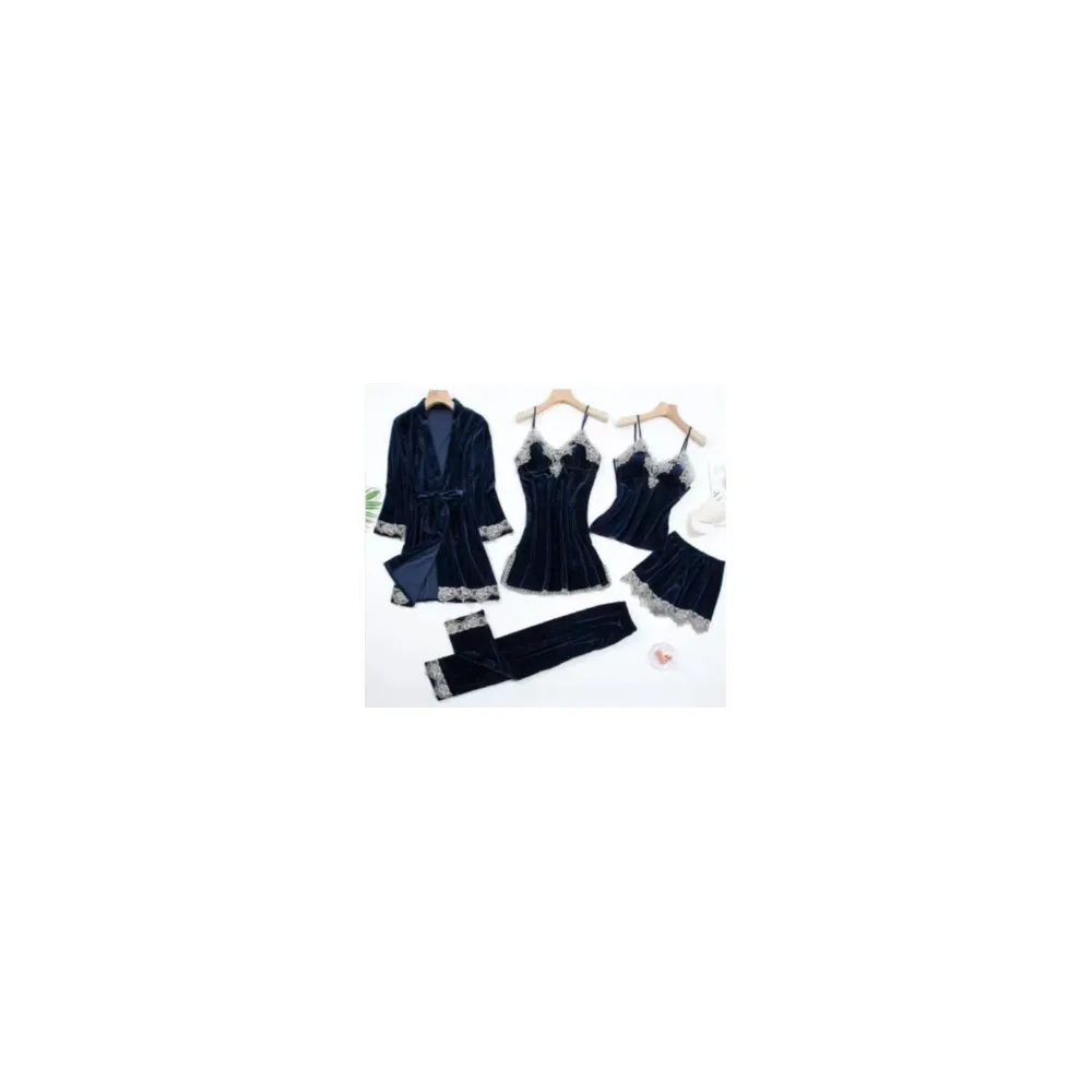 Set Pijama De Dama 5 Piese Bleumarin Din Catifea- MEI19