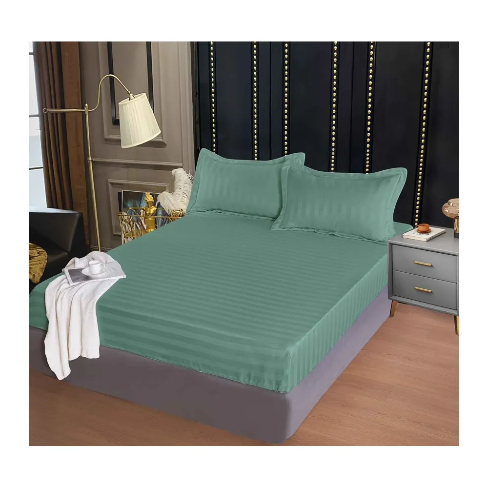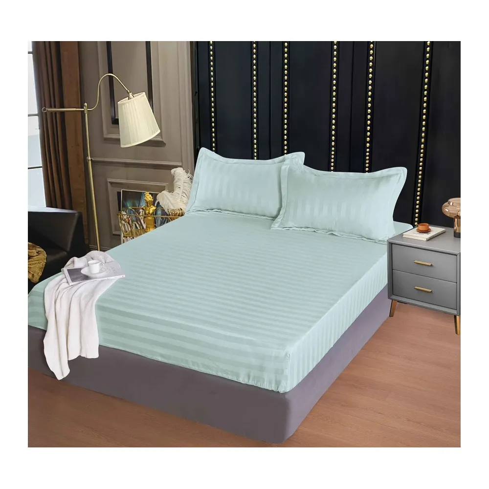 Lenjerie de Pat Damasc Finetat, cu Elastic, 4 Piese, Verde Menta - QP8108