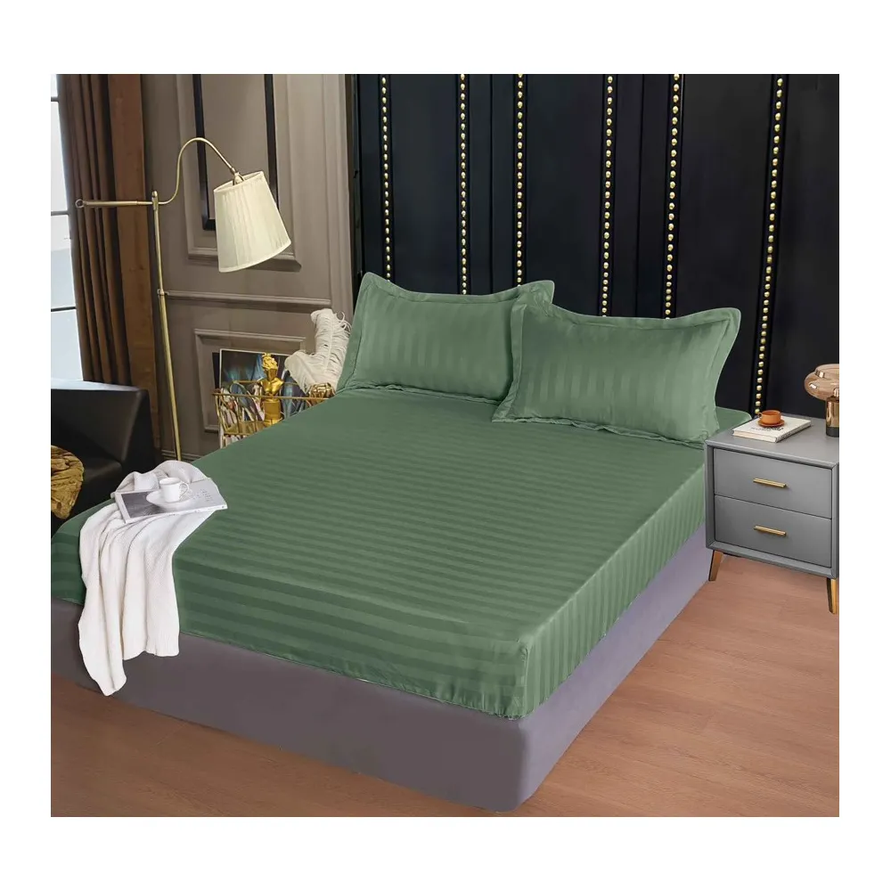 Husa de Pat + 2 Fete de Perna Bumbac Damasc 160x200cm , Verde - CPL347