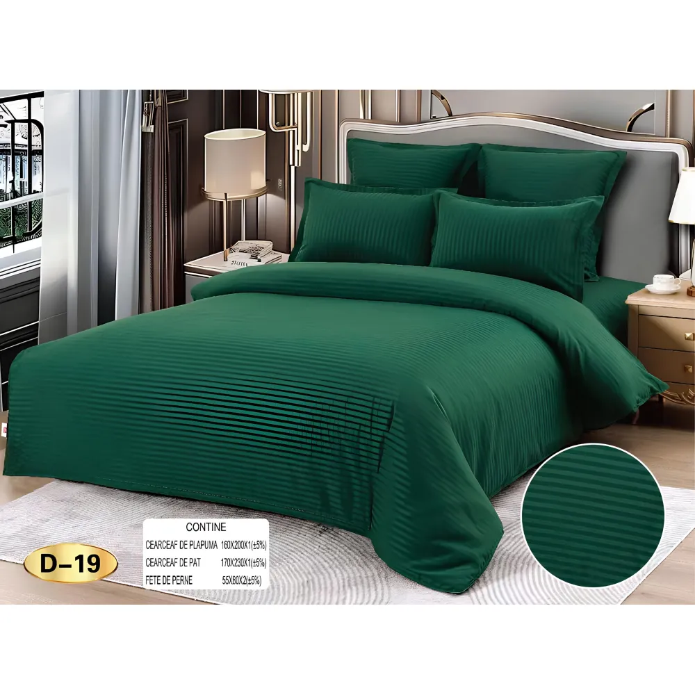 Husa de Pat + 2 Fete de Perna Bumbac Damasc 160x200cm, Verde Inchis - CPL350