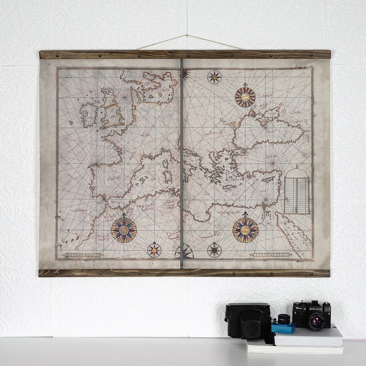 Tablou decorativ, Map117, Lemn, Piele ecologica, Multicolor