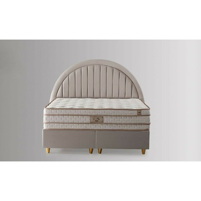 Set pat tapitat Parma + saltea Parma 160x200 cm stofa buclata bej