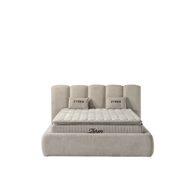 Set pat tapițat Zyren 160x200 cm crem cu somieră rabatabilă, ladă depozitare și saltea inclusă