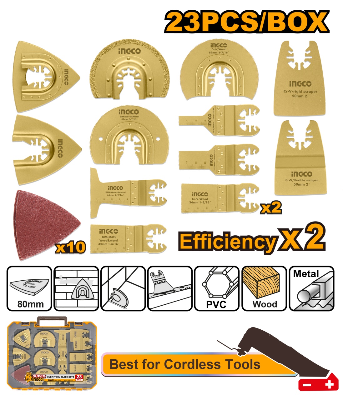 Set Accesorii Multi Tool 23 Bucati pe Acumulator INGCO – AKTMT2301 – Versatilitate si Performanta Extinsa pentru Scule Oscilante