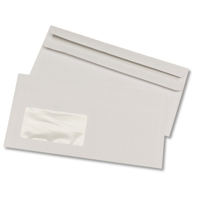 Plic DL 110 x 220 mm Autoadeziv cu Fereastra Stanga, Alb, 1000 Bucati