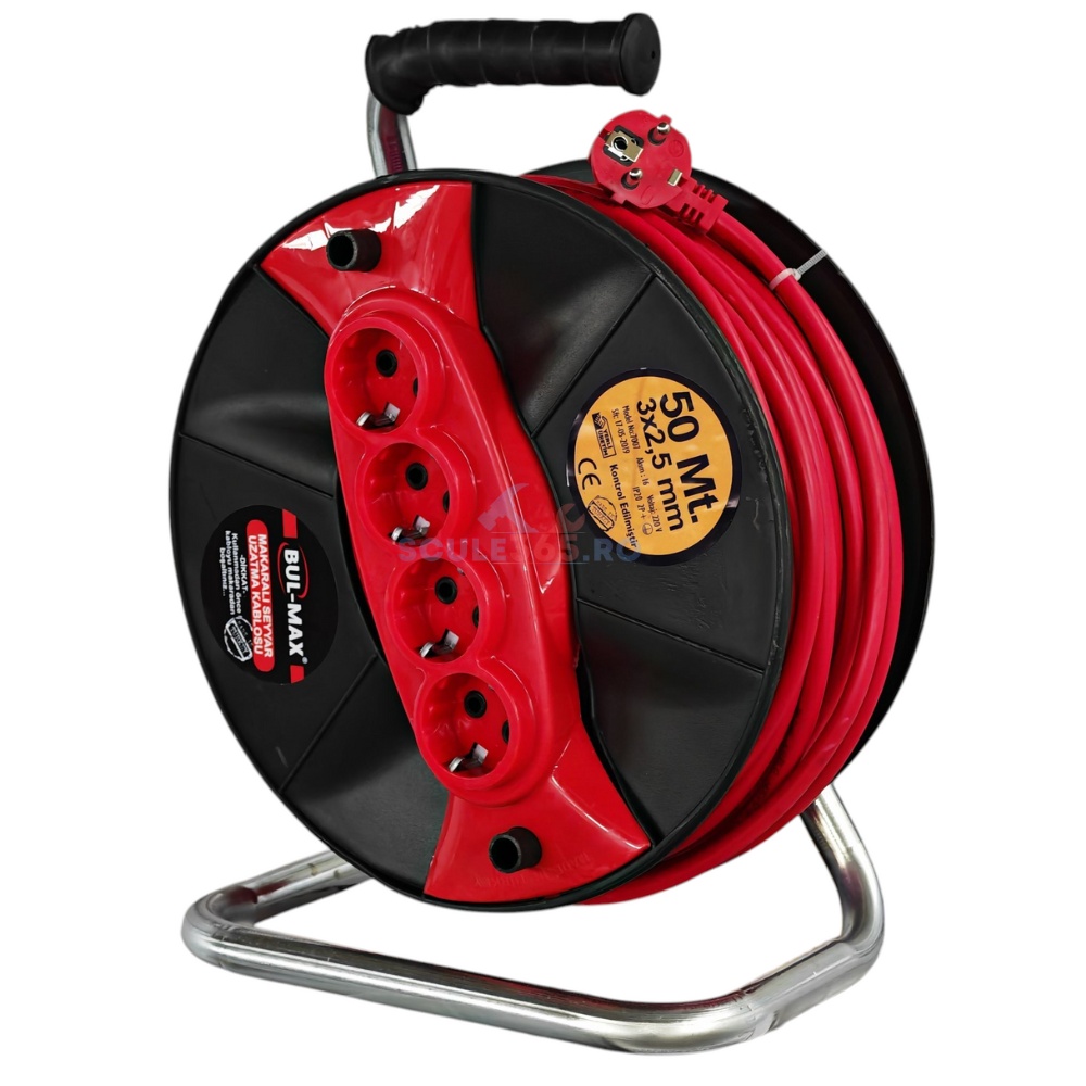Prelungitor electric 50m, pe rola cu tambur, 50m, 3x2.5mm, 4 prize, 3500W, BUL-MAX BMX1388