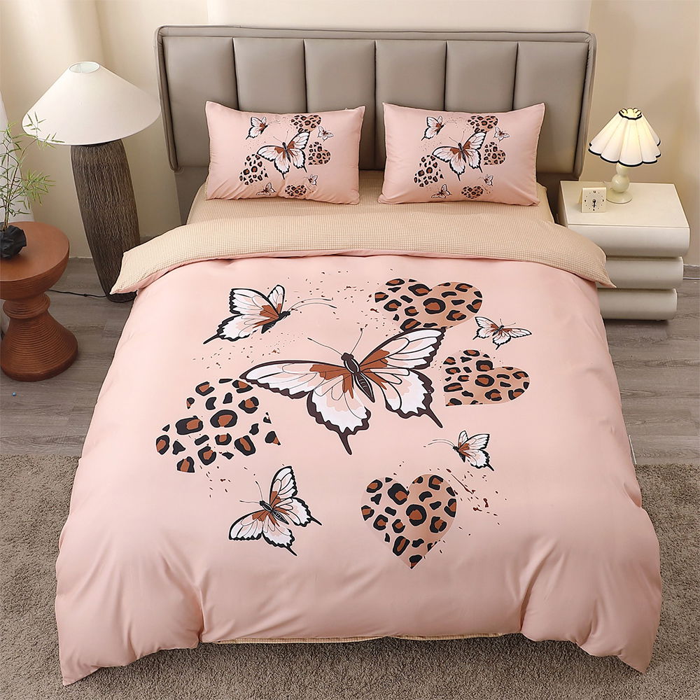 Lenjerie Fluturi si Inimi Animal Print din Finet 5D cu Cearceaf Elastic 160/180x200cm, 4 Piese - LFDEB_A121C