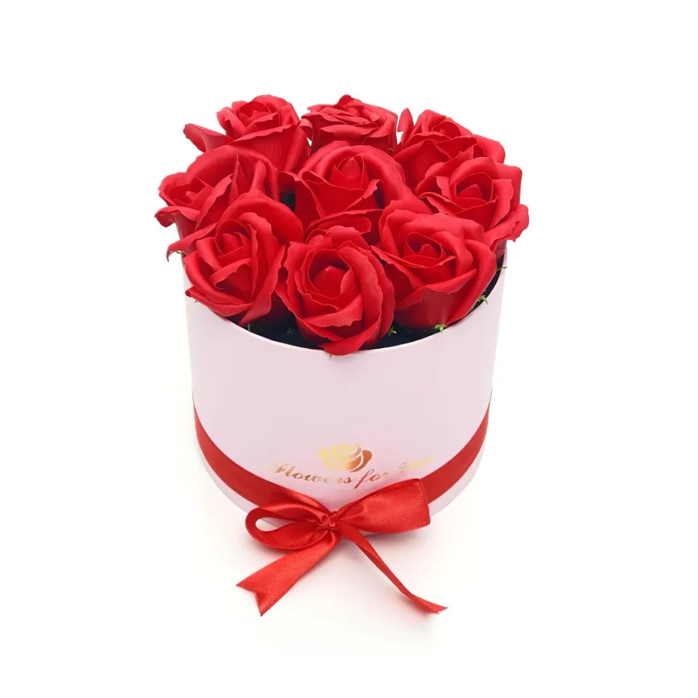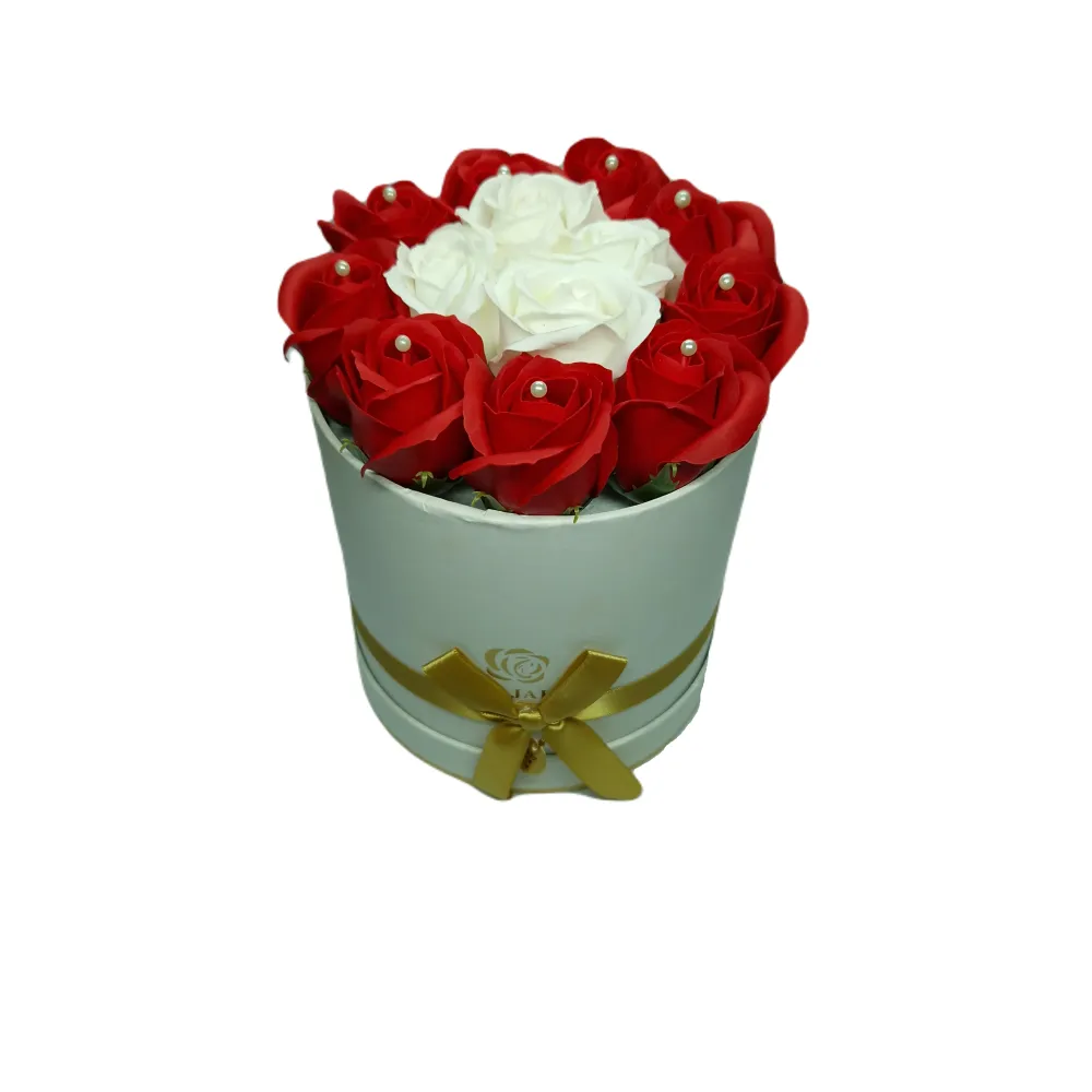 Aranjament Floral Trandafiri Sapun - Cutie Rotunda mica - VLTN125