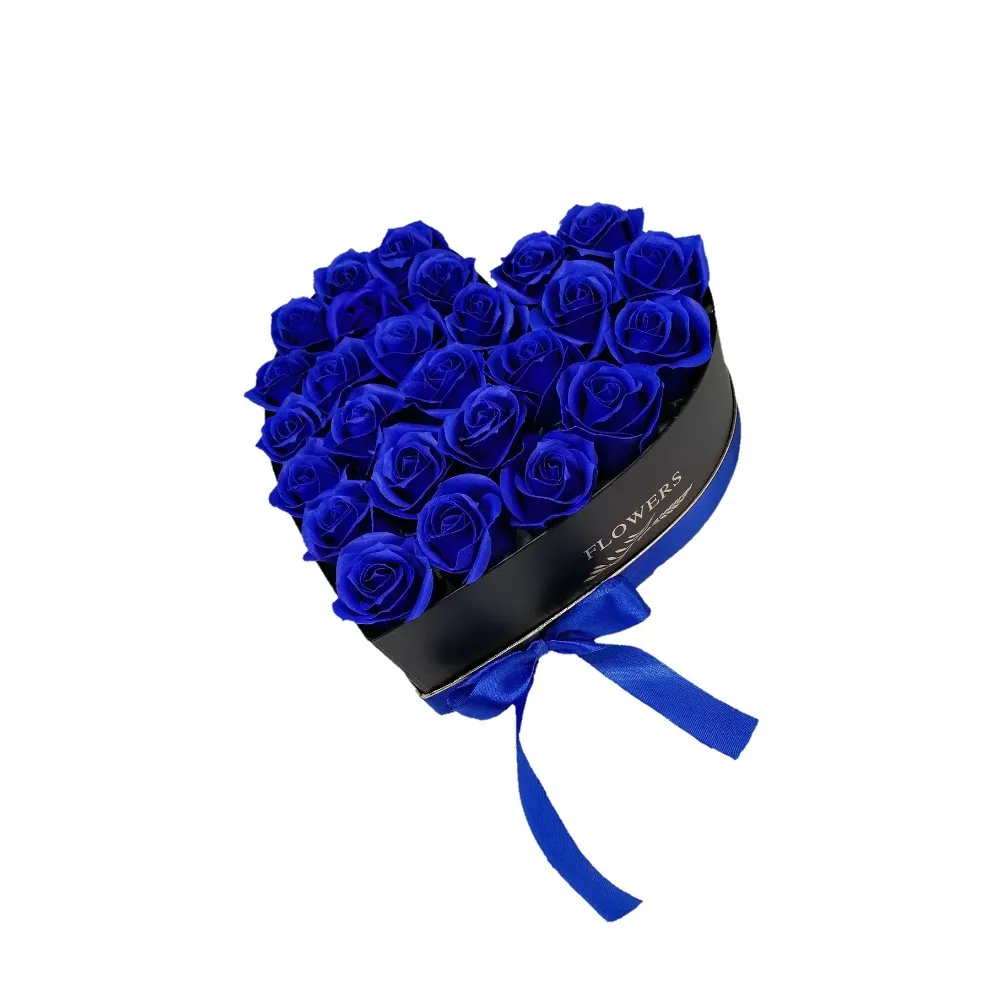Aranjament Floral Trandafiri Sapun - Cutie Inima 28 Trandafiri Albastru - VLTN117