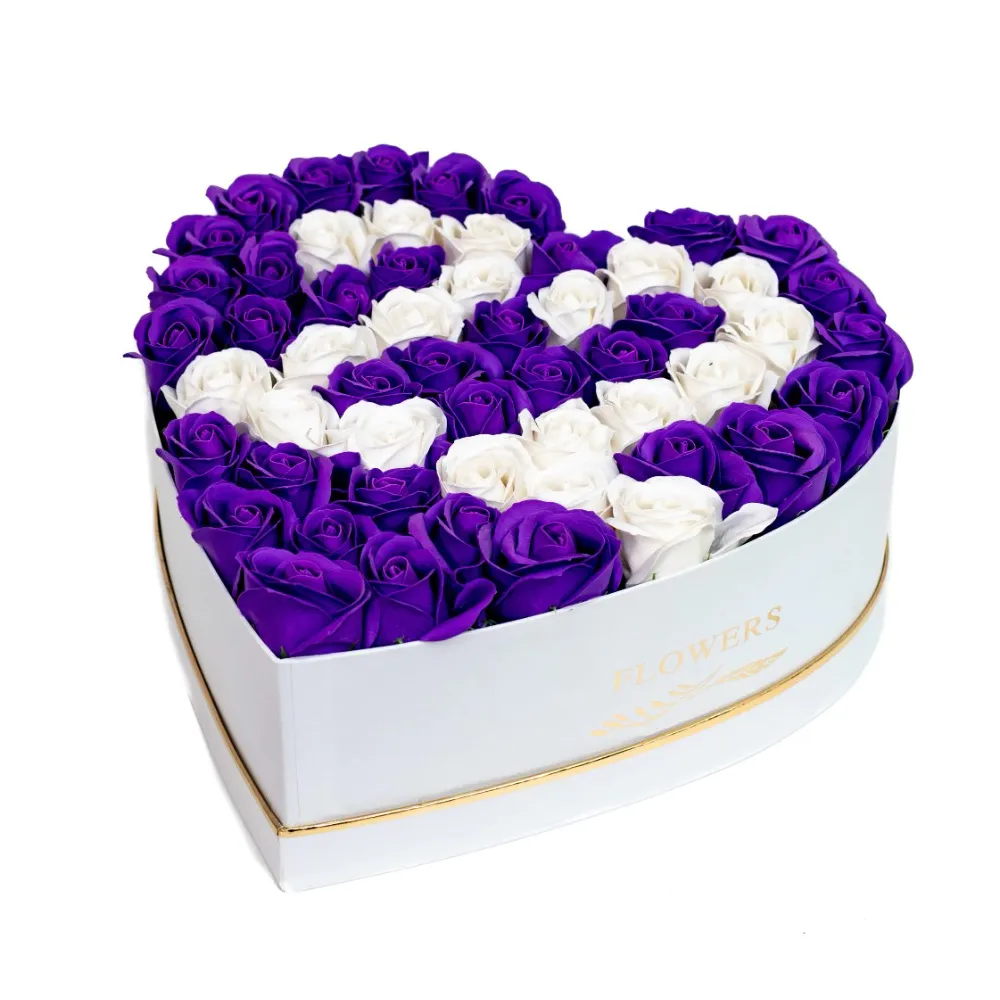 Aranjament Floral Trandafiri - Cutie Inimioara 45 Trandafiri Sapun - VLTN133