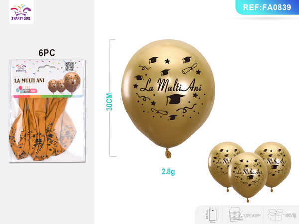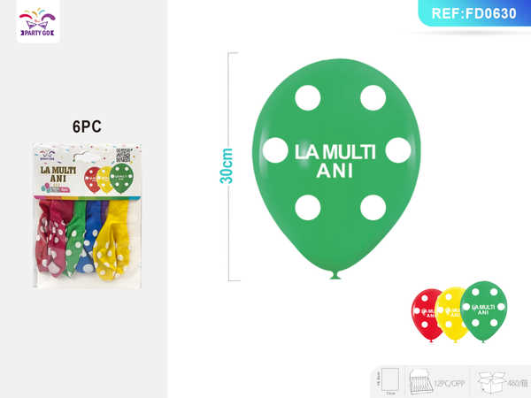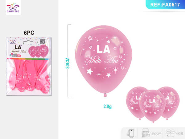 Baloane latex Engros, set 6 bucati, 30 cm, multicolor, FA0213