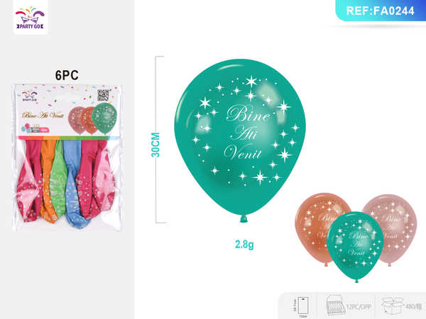 Baloane latex Engros, set 6 bucati, 30 cm, multicolor, FA0076