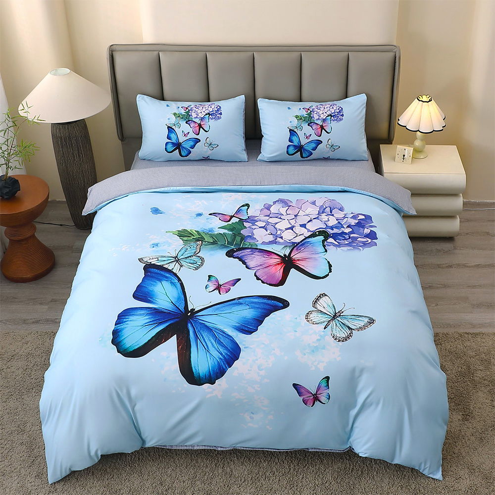 Lenjerie Blue Pastel cu Fluturi din Finet 5D cu Cearceaf Elastic 160/180x200cm, 4 Piese - LFDEB_A103C